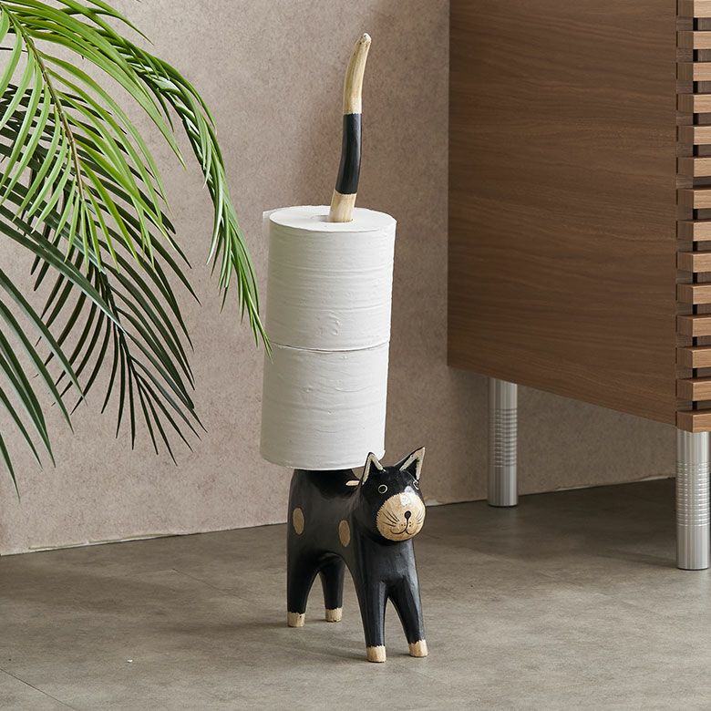 キッチン 人形 アニマル カフェ プレゼント ギフト 店舗 トイレットペーパーホルダー バリ ネコ 猫 置物 天然木 木彫り オブジェ トイレ ペーパー ホルダー [13983]【 お土産 ハンドメイド 手彫り 手作業 手作り 収納 ストッカー キッチンペーパー リビング 玄関 ディスプレイ 置き物 おしゃれ リゾート アジアン 雑貨 小物 】