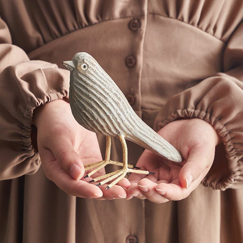 幸運のシンボルとして親しまれている鳥をモチーフにした木彫りのオブジェ。 シャビーシックな色合いがかわいいハミングバード[14167]