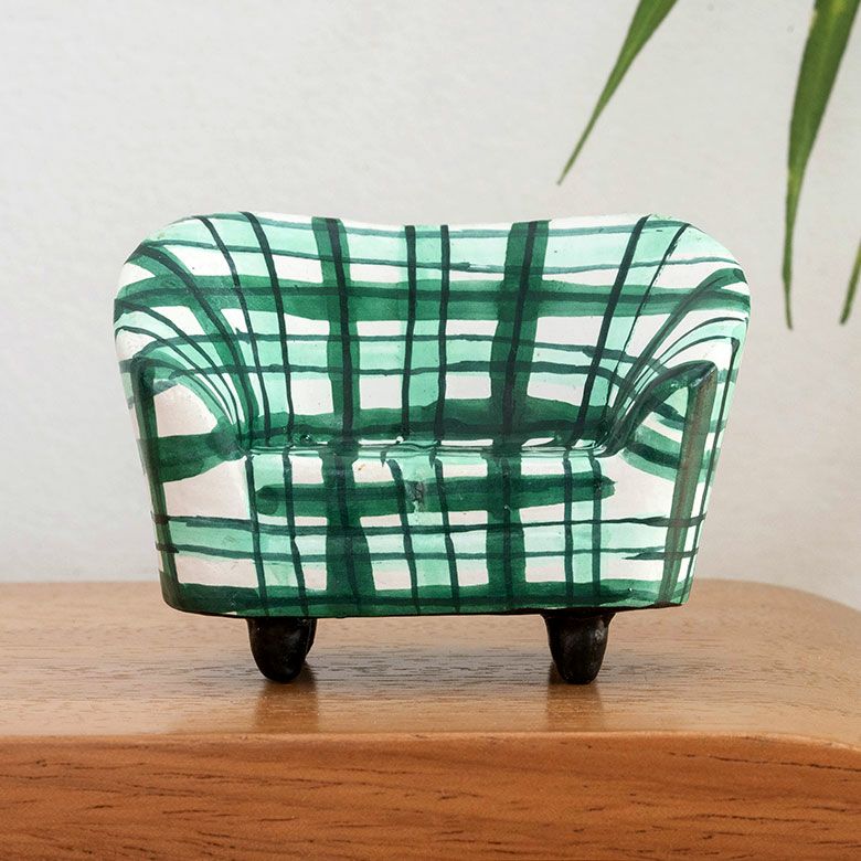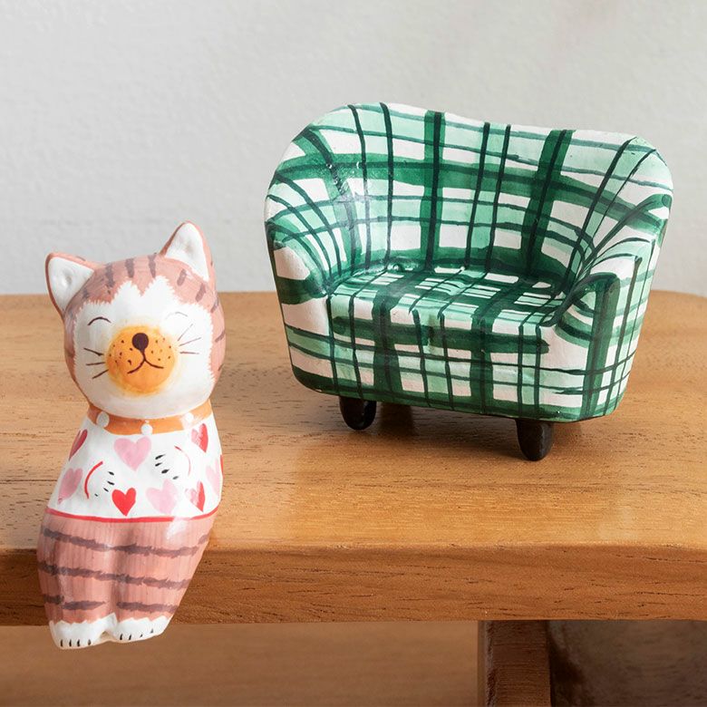 バリ島で生まれた、カラフルな木彫りのソファのオブジェ。