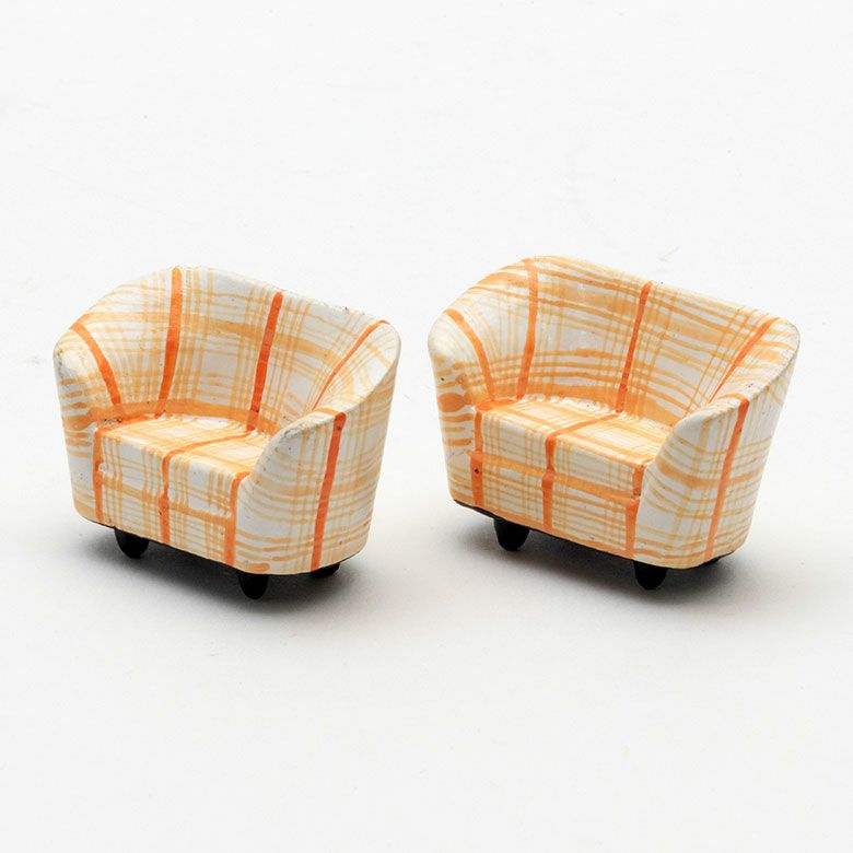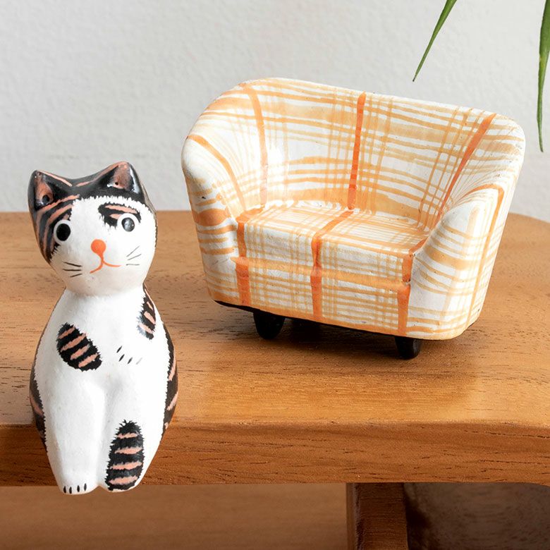 カラフル模様の木彫りのミニソファ