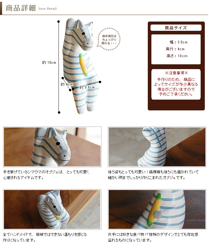ちょこんと座り片手を挙げている姿が可愛いシマウマのオブジェ。