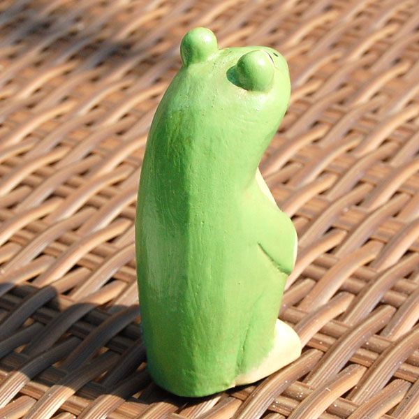 お座りするカエルのオブジェ。後姿もなんだか凛々しい! |