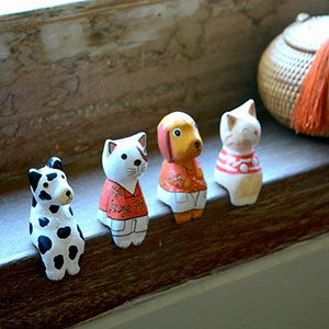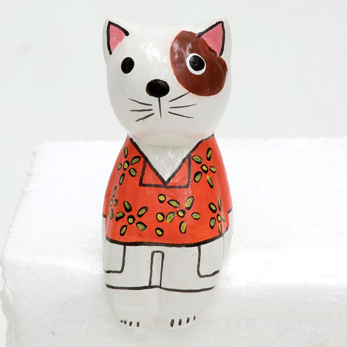 ![]() お座りした木彫りのネコ(白) |