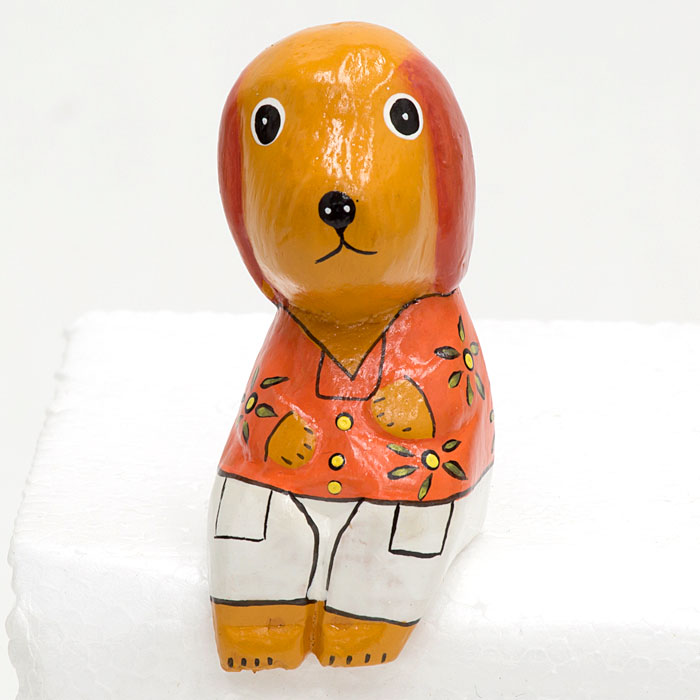 ![]() お座りした木彫りの犬(茶色) |