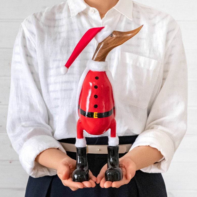 Christmas 装飾 グッズ ディスプレイ ハンドメイド マスコット オブジェ クリスマス Xmas 飾り デコレーション あひる アヒル ダック duck 約 W13-16 D15-16 H31-35 [13912]【 サンタ サンタクロース フィギュア 人形 デコレーション 雑貨 置物 木製 ウッド インテリア ギフト プレゼント おしゃれ 北欧 ナチュラル バリ アジアン雑貨 】