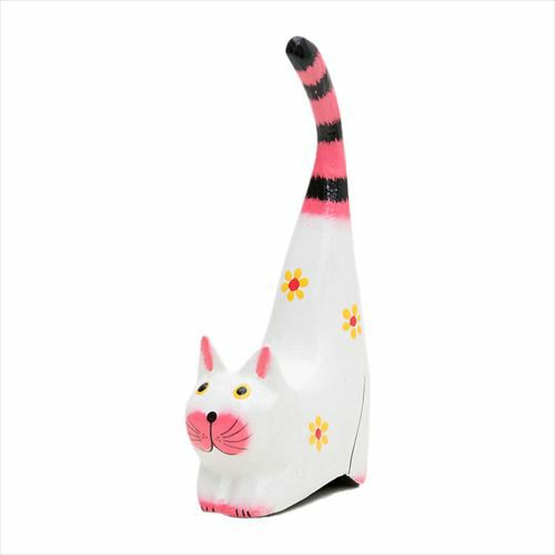 トラのようなしっぽが特徴的で、カラフルなバリネコのオブジェ。
