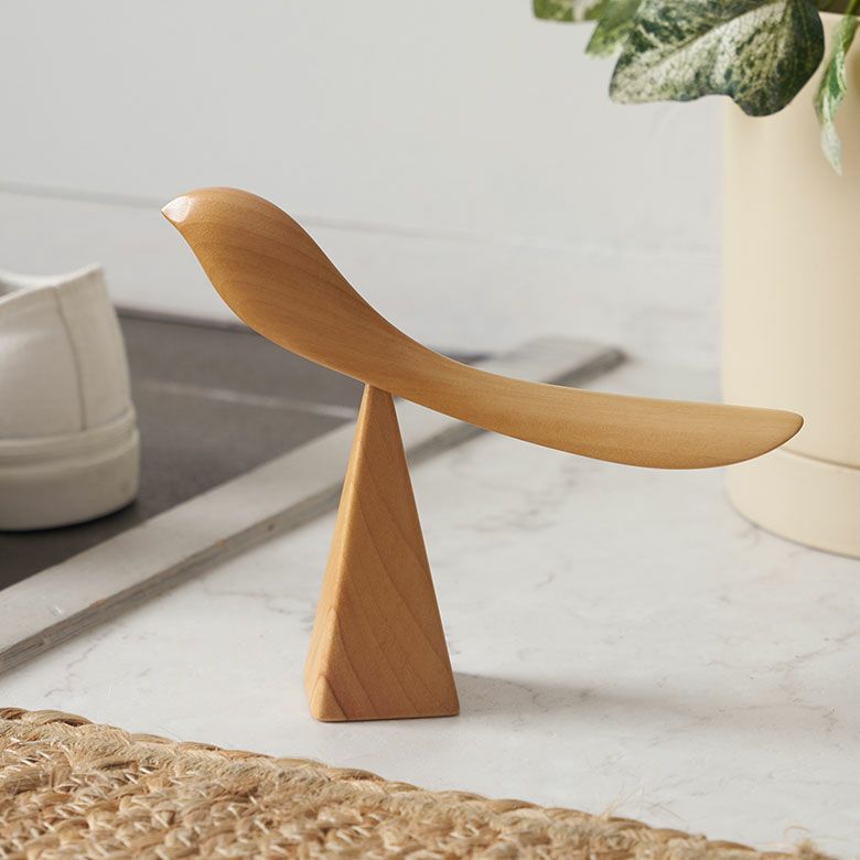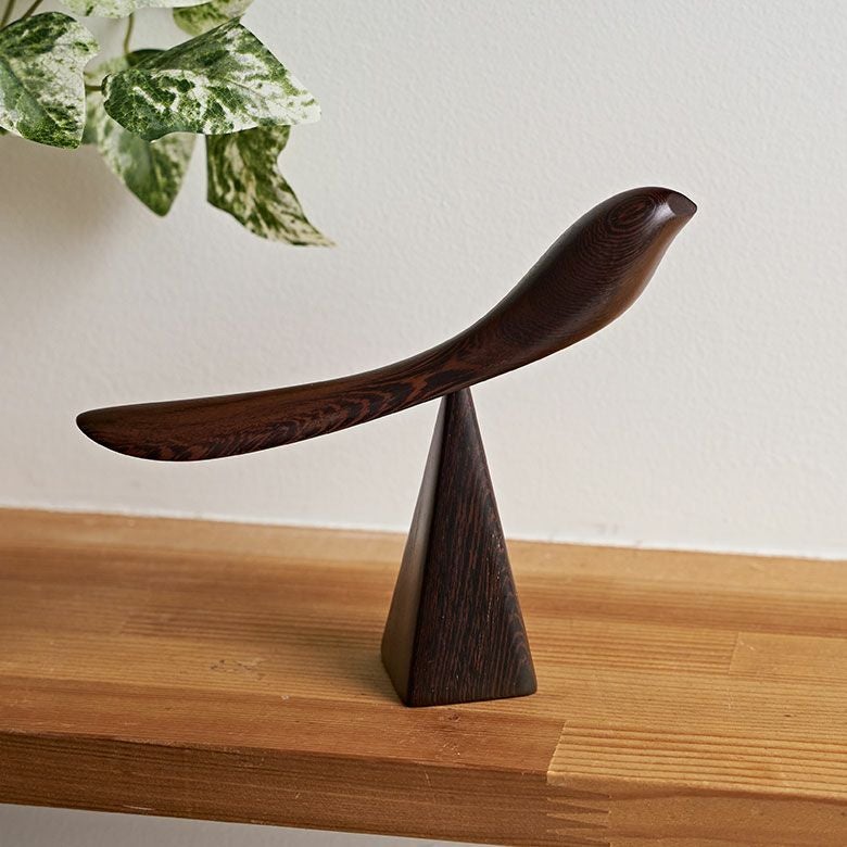 天然木を削り出して作られた、可愛らしい鳥の形のシューホーン。