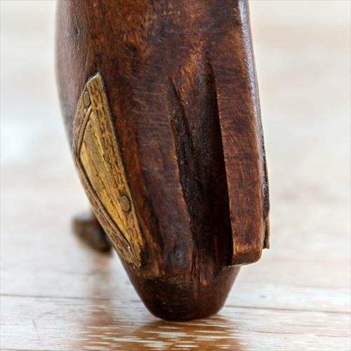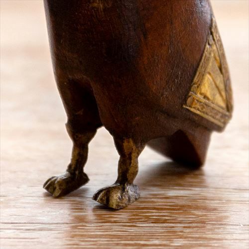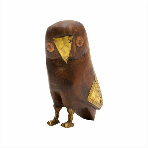 木製のボディに真鍮のくちばし、羽、脚がかわいい、フクロウのオブジェ。