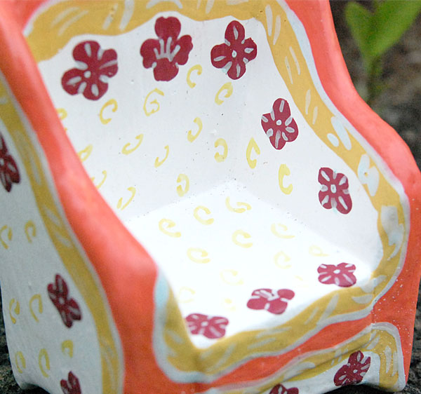 カラフルなソファはハンドメイドで作られています。手描きの味のある絵付けは温かみがありますよ☆ |