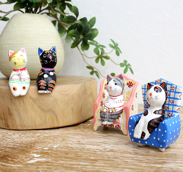 ソファはそのまま飾ってもミニチュアみたいで可愛いですが、当店のバリネコなどの