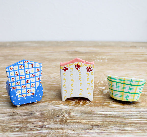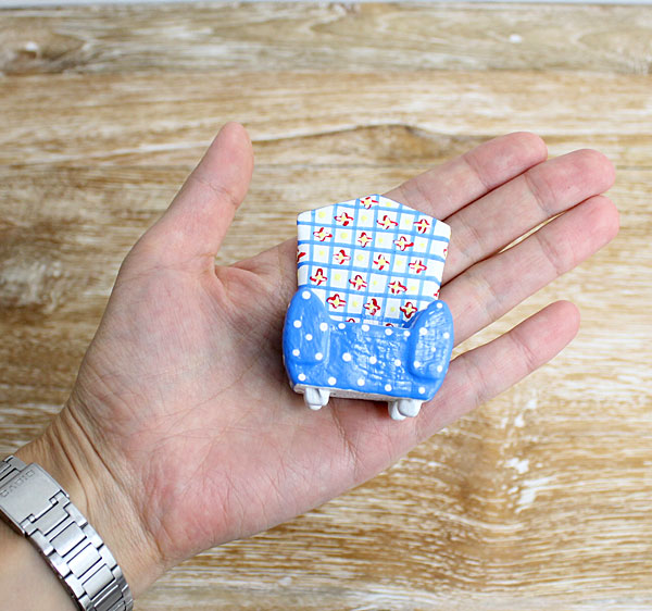 手のひらに収まるミニチュアソファ。そのまま飾っても◎! |