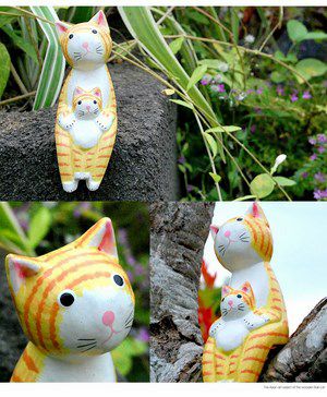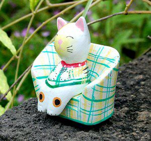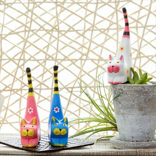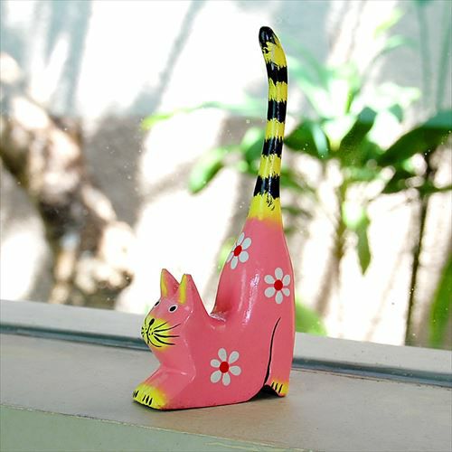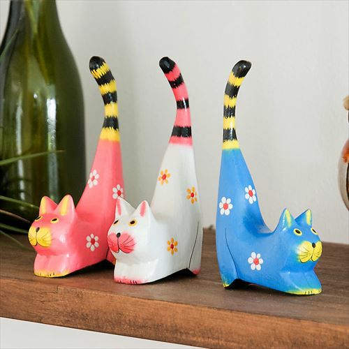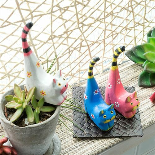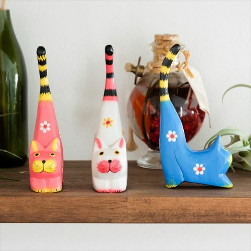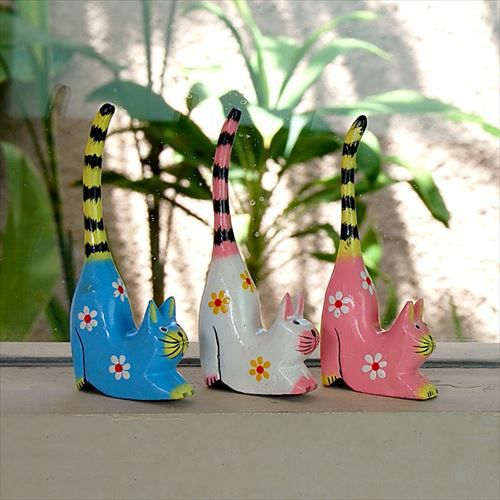 バリ島の定番と言っても良いバリネコの木彫りオブジェや