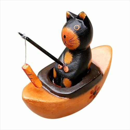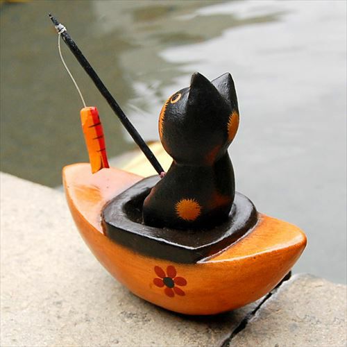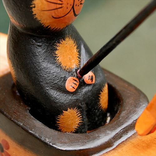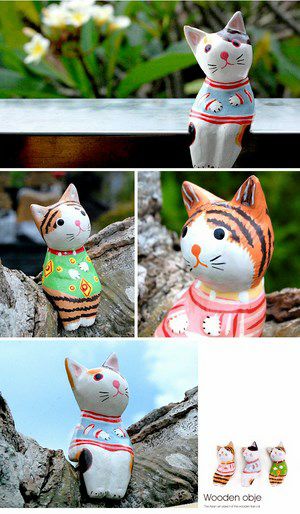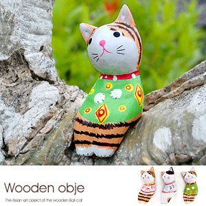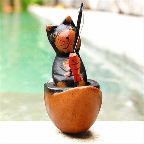 バリ島で見つけた素朴な表情がかわいい木彫りの猫の置き物。バリ島の人気アジアン雑貨 ちょこんとお座りするバリネコの木彫りオブジェ 3柄展開[11532-11533-11534]【アジアン雑貨のアジア工房本店】