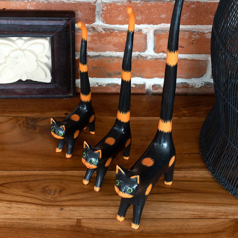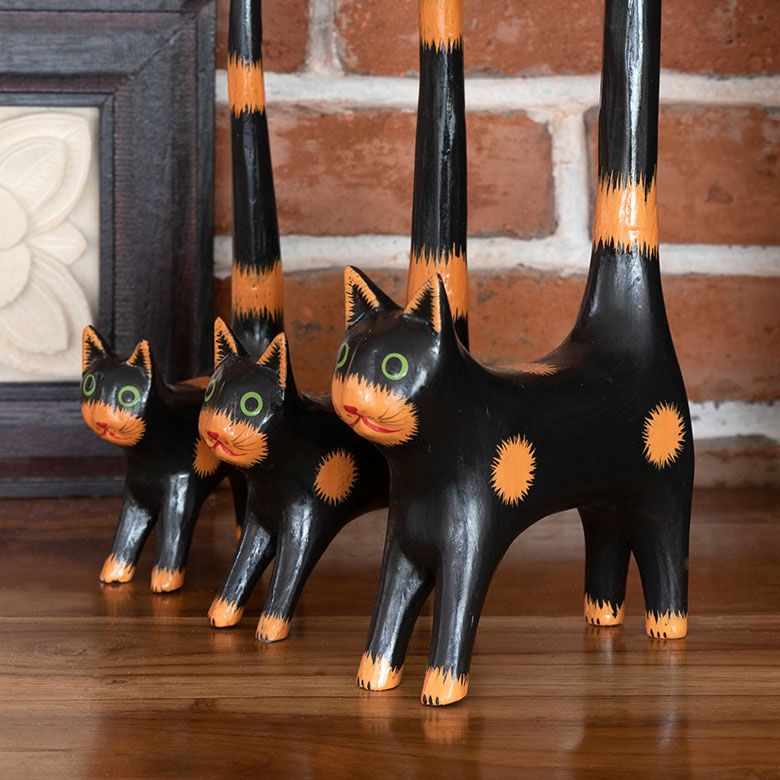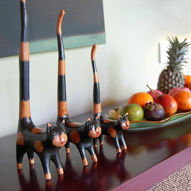 バリ島の定番と言っても良いバリネコの木彫りオブジェや
