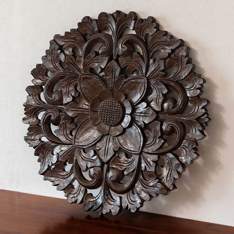 木彫りのレリーフラウンド |
