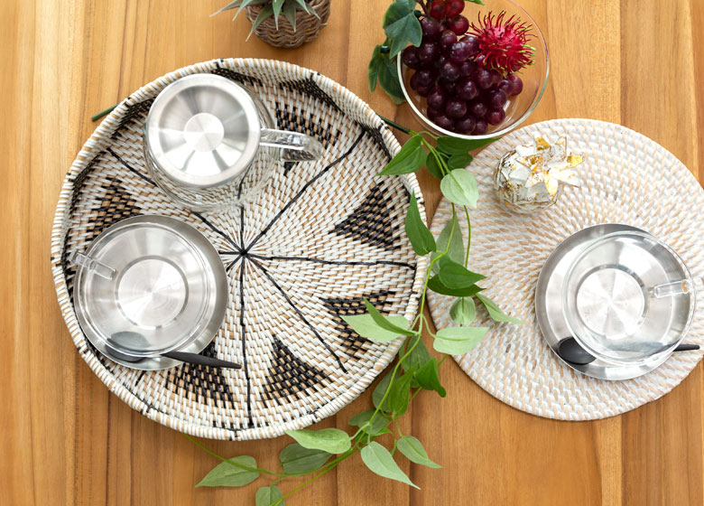 お茶出しトレイにしたり、デコレーションとして飾ると、