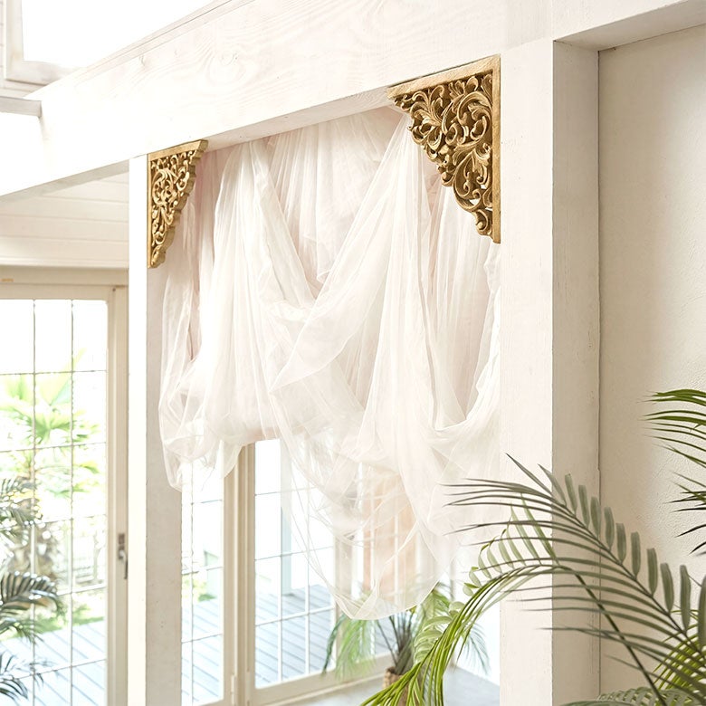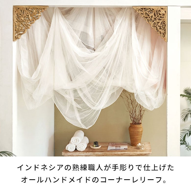 窓やドアの両隅に飾るだけで、バリ島リゾートの雰囲気を簡単に取り入れることができるウォールデコレーション。 立体的なデザインが光と影を作り、空間に深みと高級感をプラスします。 アジアンリゾートや南国スタイルのインテリアを手軽に楽しめるアイテムです。