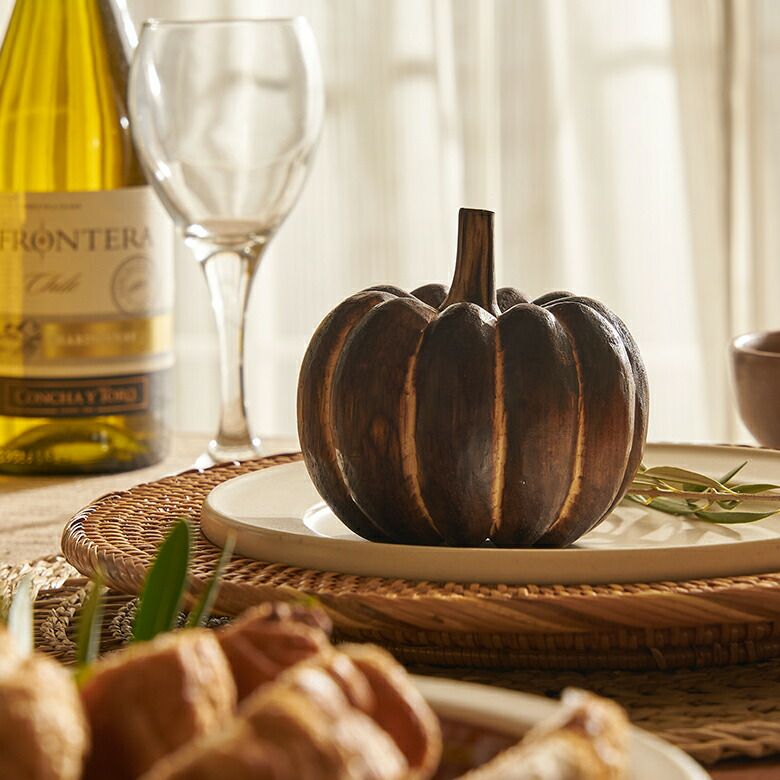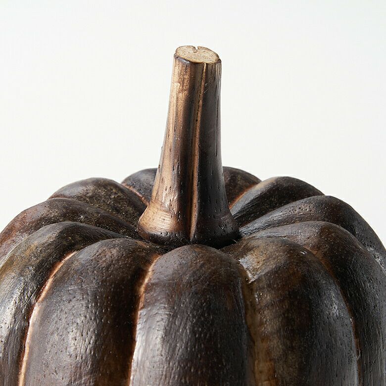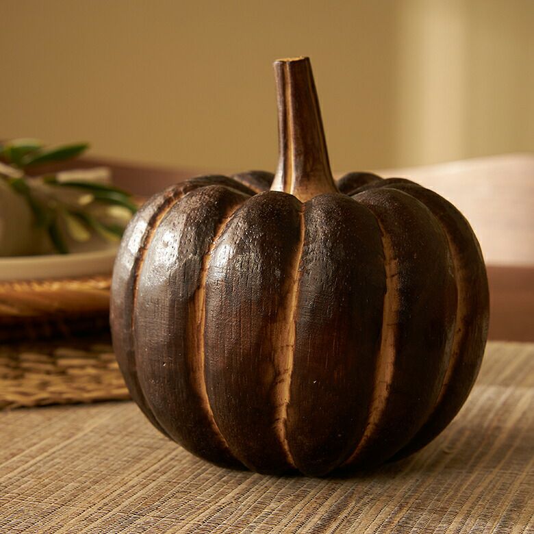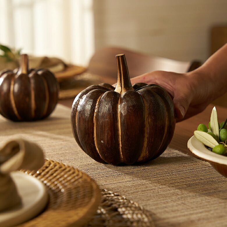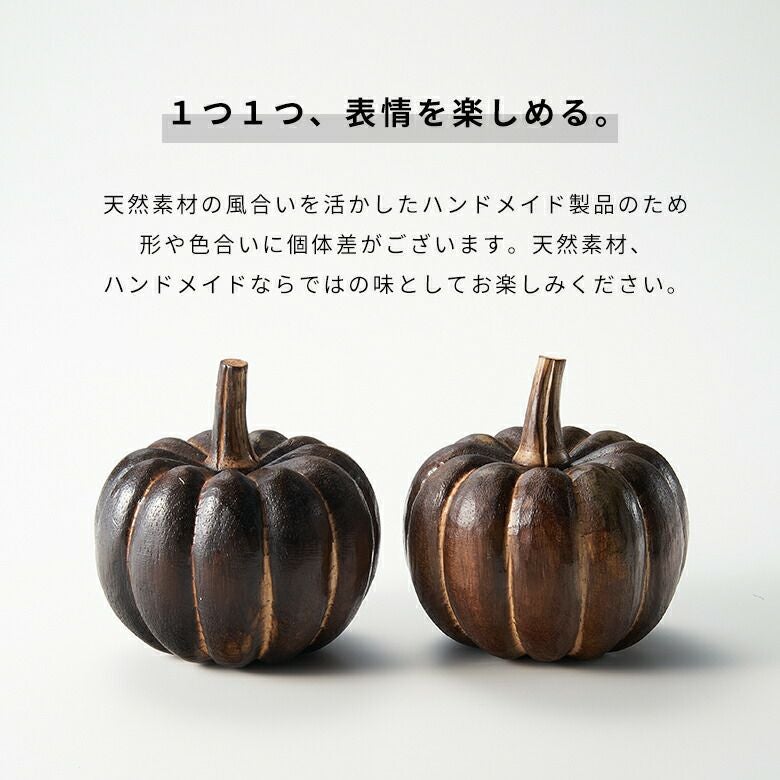 ごろんと存在感のあるサイズが可愛い、木製のかぼちゃのオブジェ。