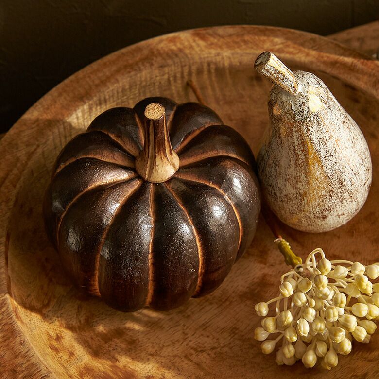 ベイクドパンプキンのオブジェ[S] ホワイトパンプキンのオブジェ 木彫りフルーツオブジェ [パンプキン] 木彫りフルーツオブジェ [ペアー(洋なし)]