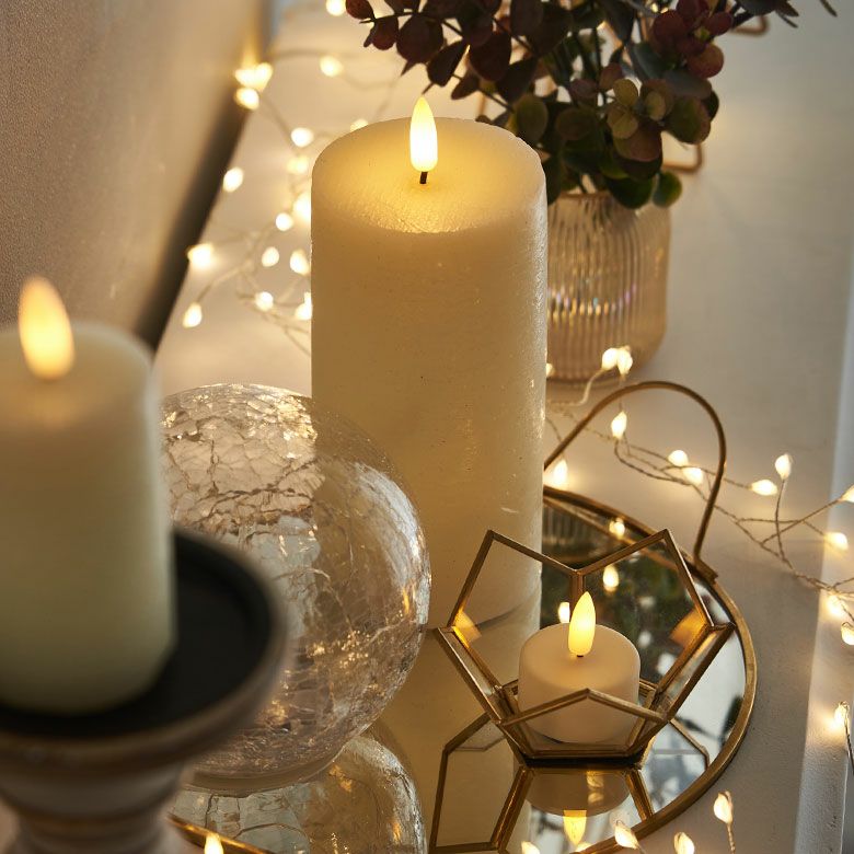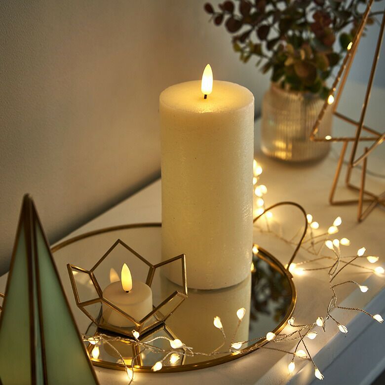 ライトや他のサイズのキャンドルと合わせて、印象的なクリスマスデコレーションに。