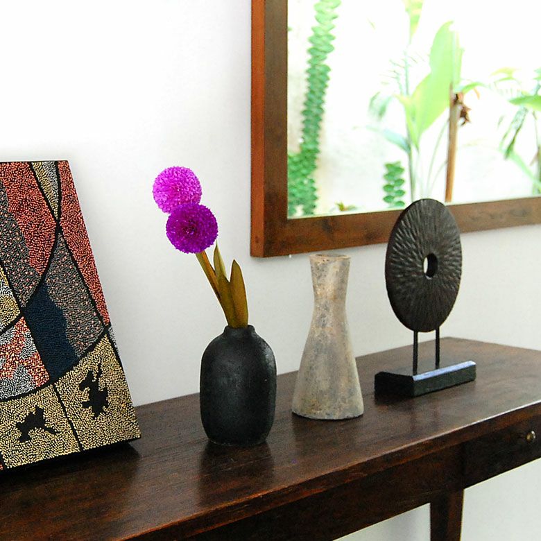 存在感バッチリのアジアンオブジェなので、シェルフやキャビネットの上が殺風景なときでも、置くだけでインテリアのアクセントになりますよ。