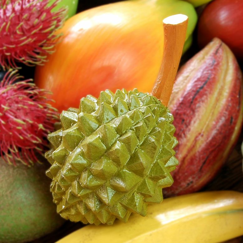 木製アジアンフルーツのオブジェが勢ぞろい。