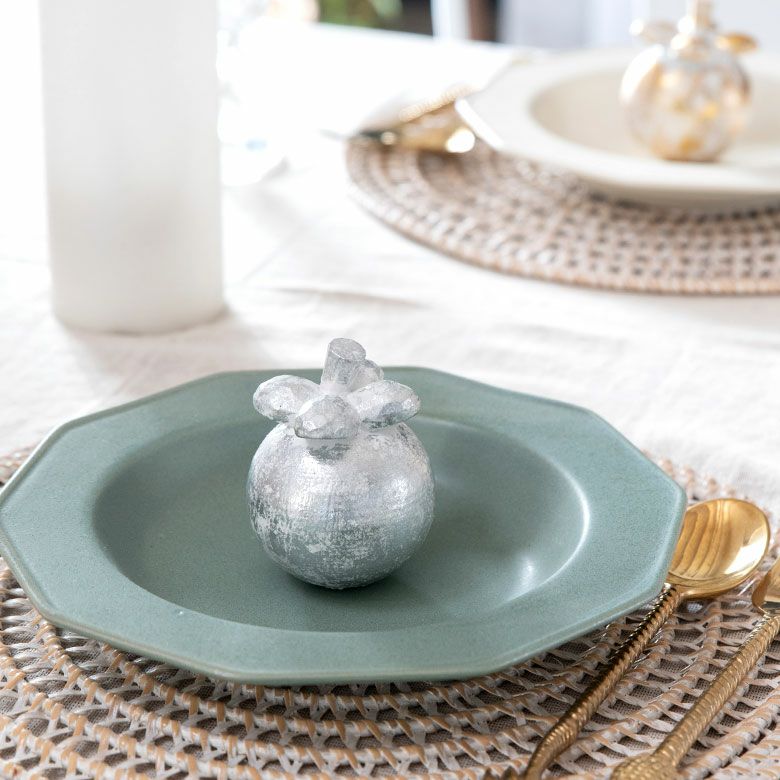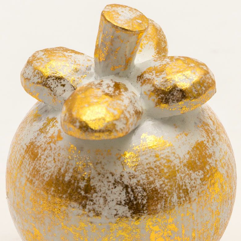 置き物 おしゃれ かわいい 卓上 飾り オブジェ ウッド 木製 木彫り 天然木 マンゴスチン フルーツ 果物 シルバー 銀 ゴールド 金 W 8cm D 8cm H 9cm [13900]【 置物 インドネシア バリ ハロウィン クリスマス ディスプレイ オーナメント インテリア 店舗 リゾート 北欧 南国 アジアン雑貨 アジア 】