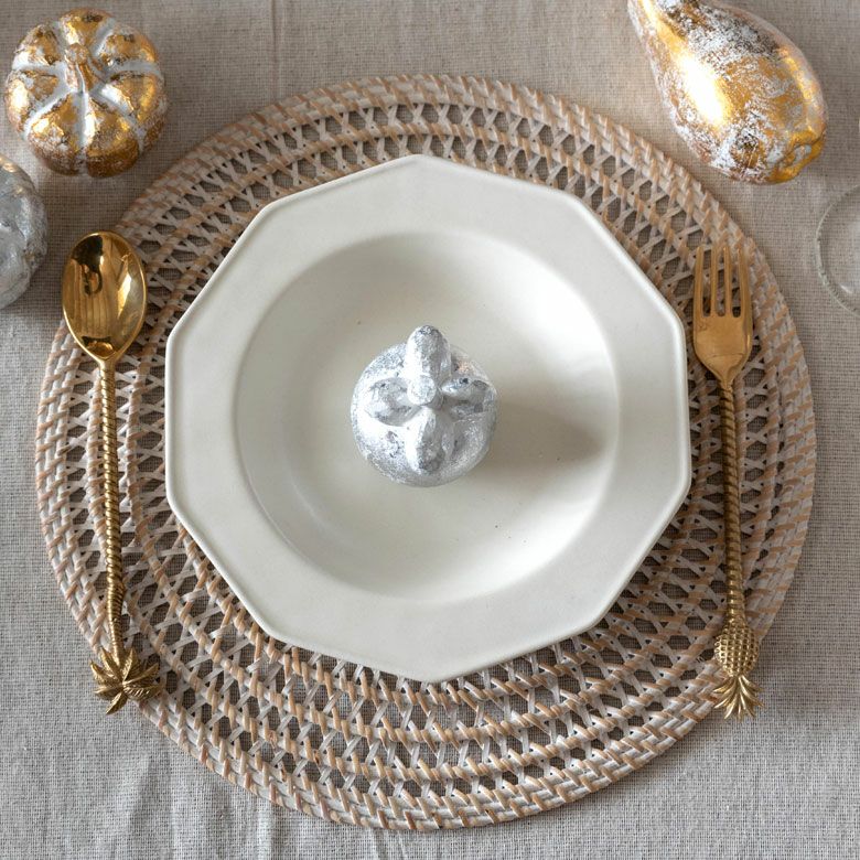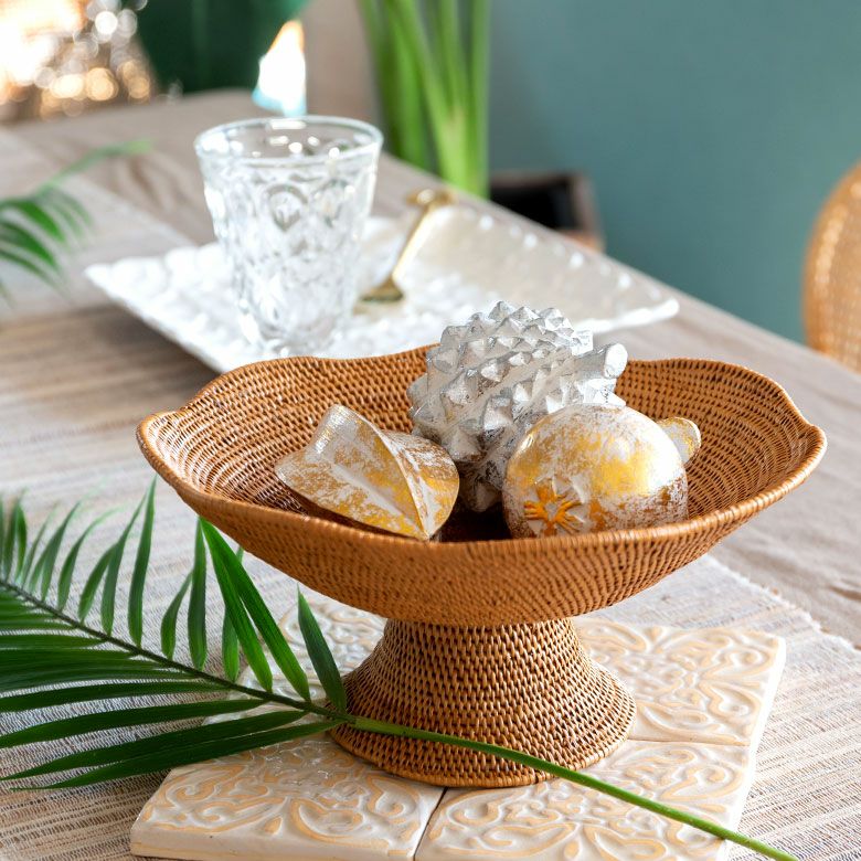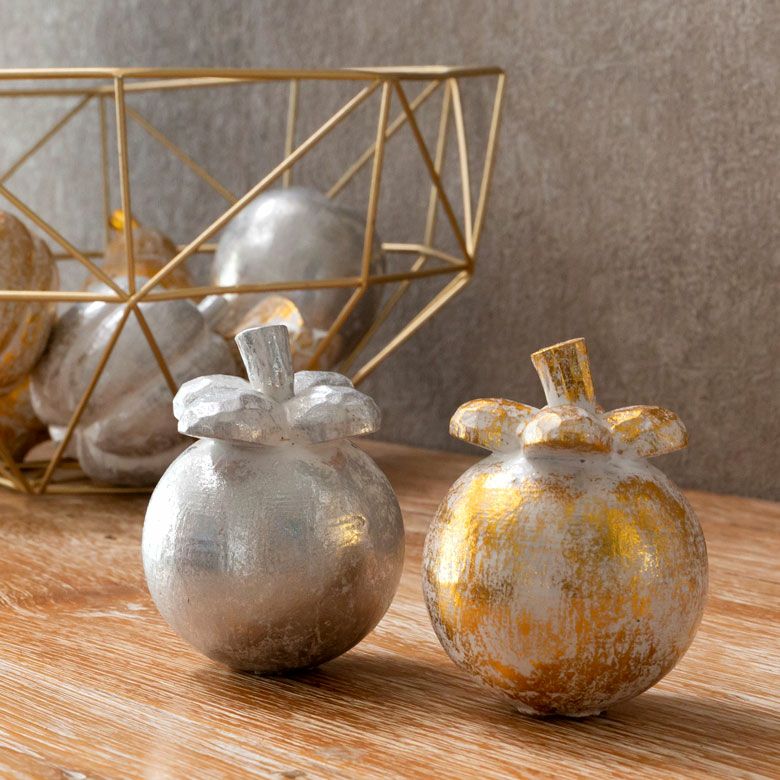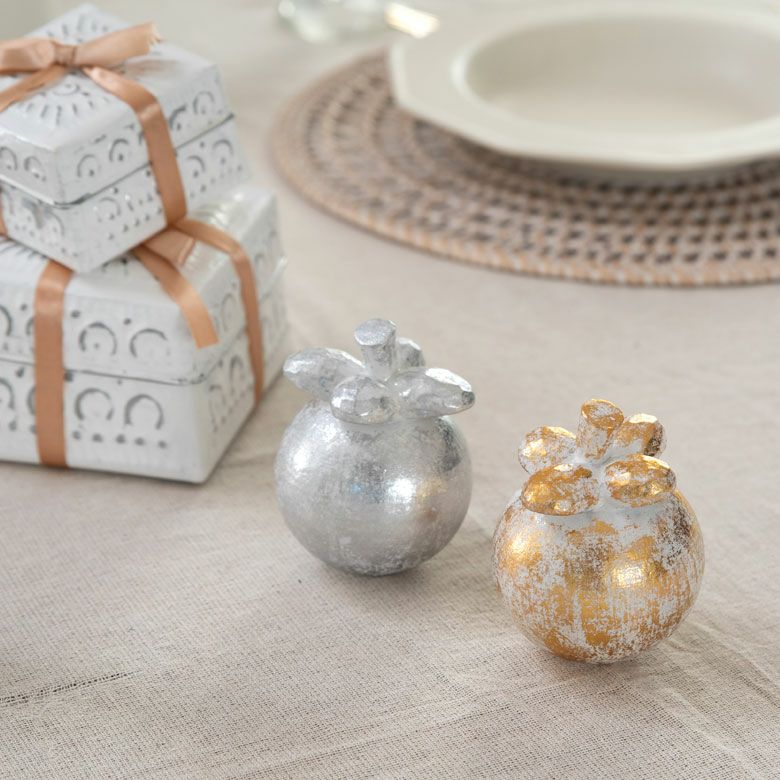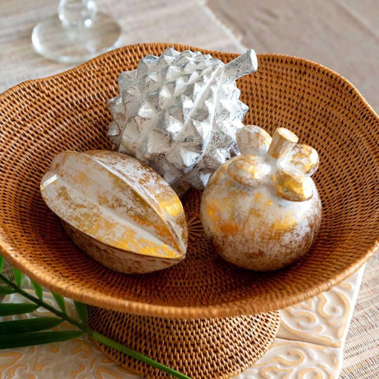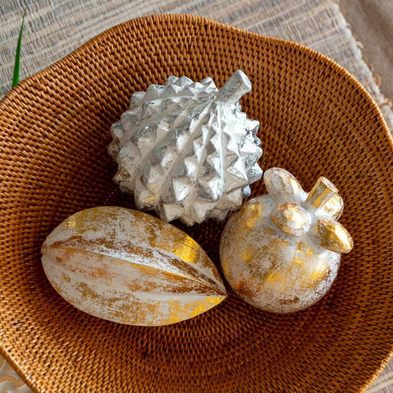 木彫りのフルーツオブジェ バリ島のオブジェ クリスマス、ハロウィンにも使える 華やかなゴールドとシルバー シリーズ使いがおすすめ