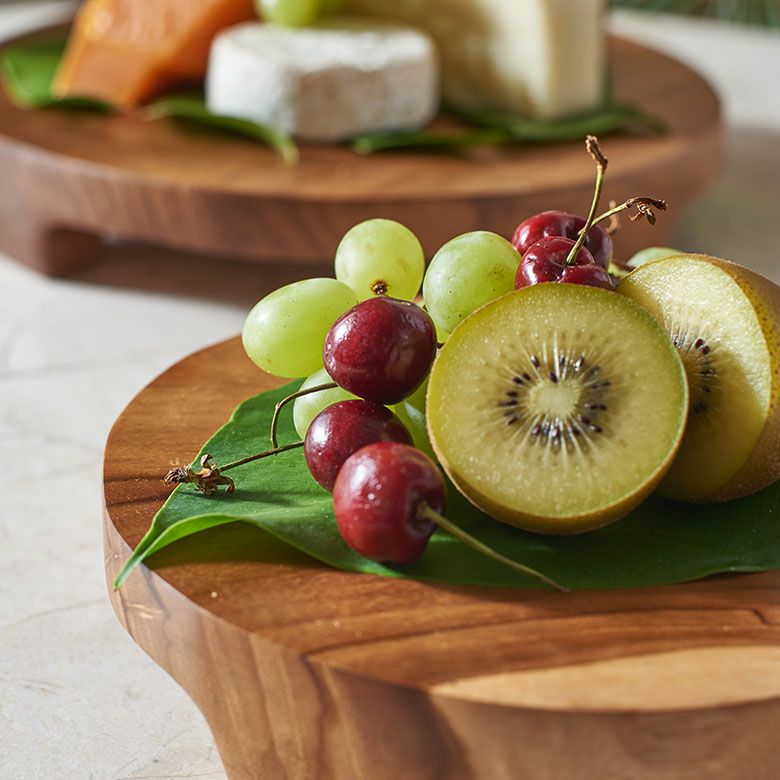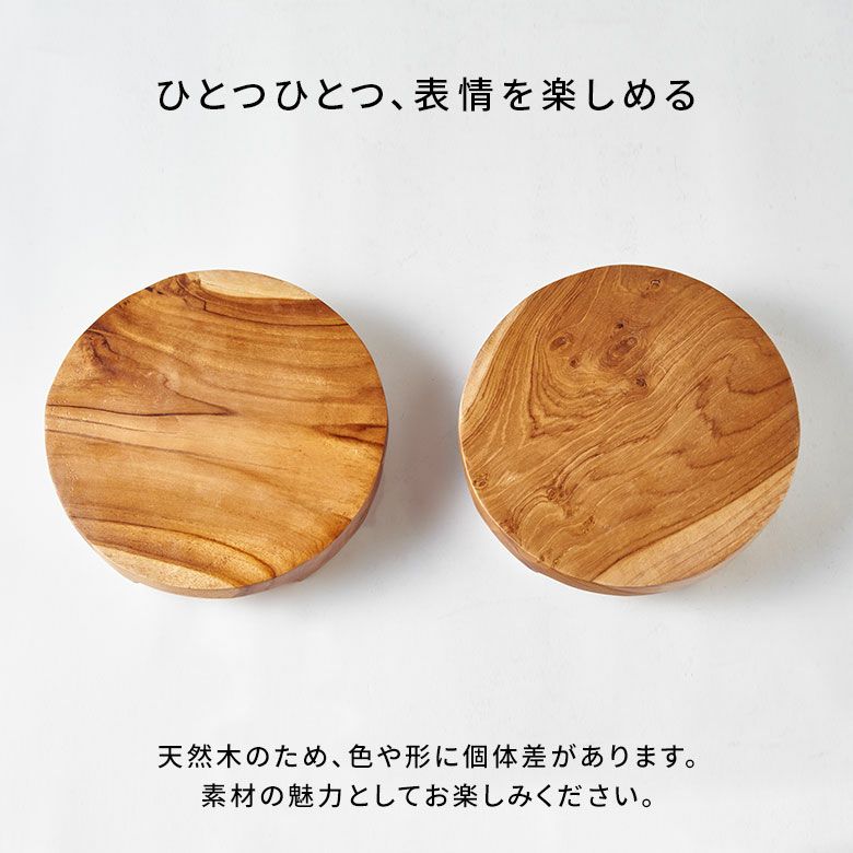 チークウッドの輪切りステージトレイ |