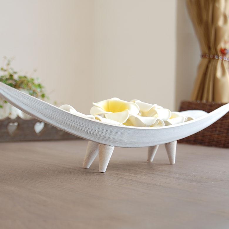 小船に足が生えたようなデザインのトレー。
