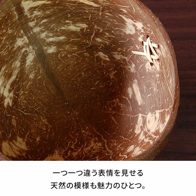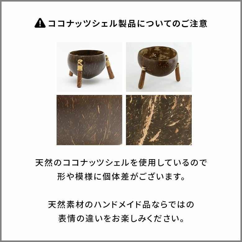 天然のココナッツシェルを使用しているので、形や模様に個体差がございます。
