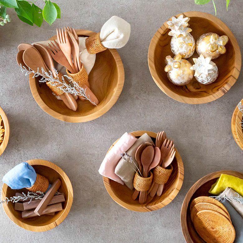 塗装をしていないナチュラルな質感で、あたたかみを感じるウッドボウル。