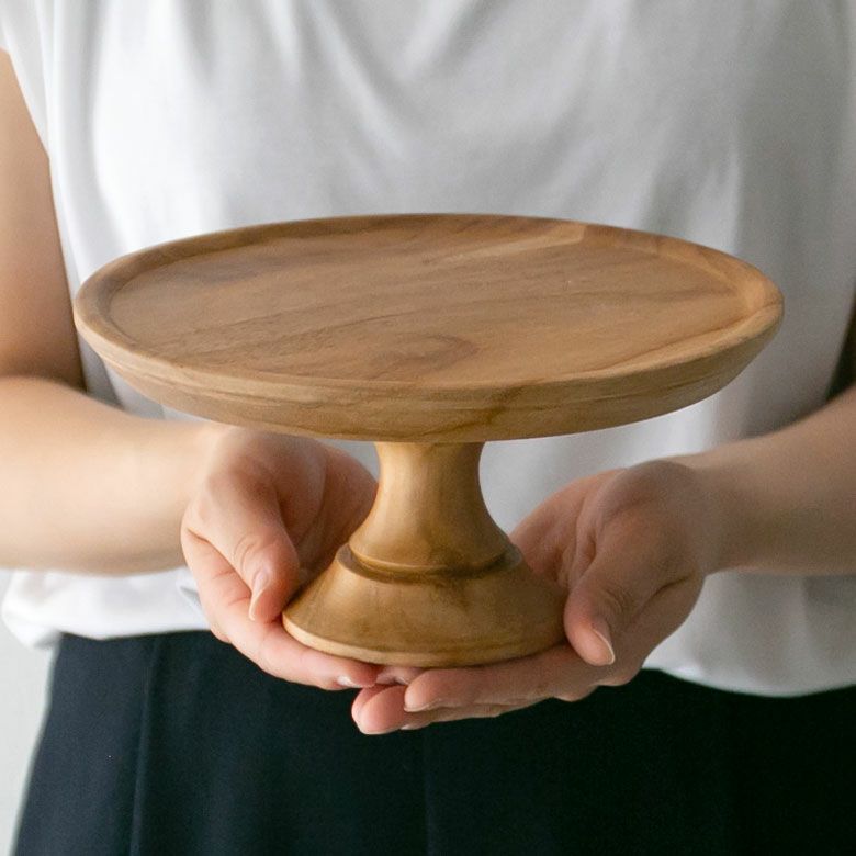 無垢のチークを贅沢に切り出してつくったケーキスタンド。