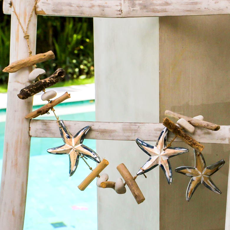 流木で出来たオーナメント ロング ヒトデブルー