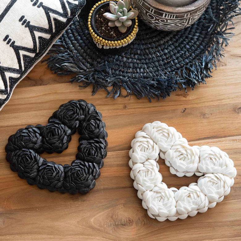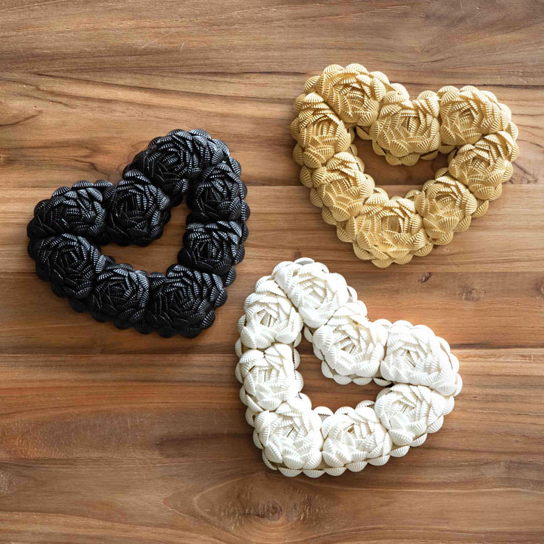 貝殻をバラの花のようにデコレーションした、ハート型オーナメント。