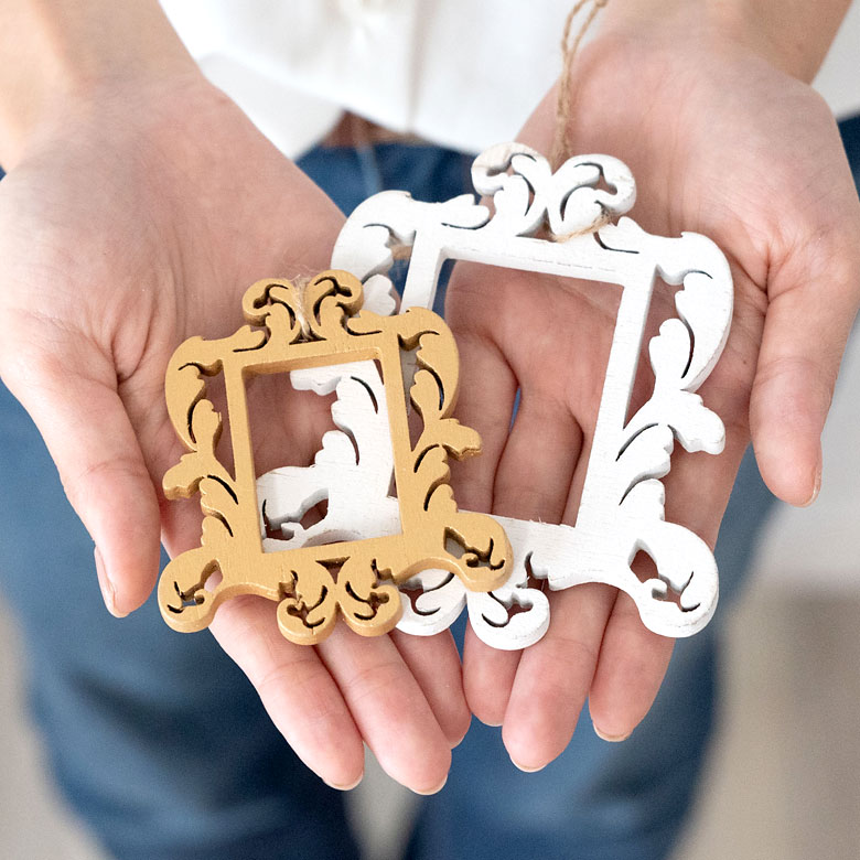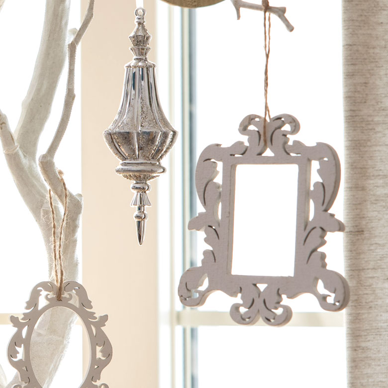 クリスマス装飾 飾り オーナメントセット 木製 オーナメント 額縁 クリスマス ツリー シルバー [94118]【 ゴールド フレーム スクエア 装飾 デコレーション クリスマスツリー アンティーク 】