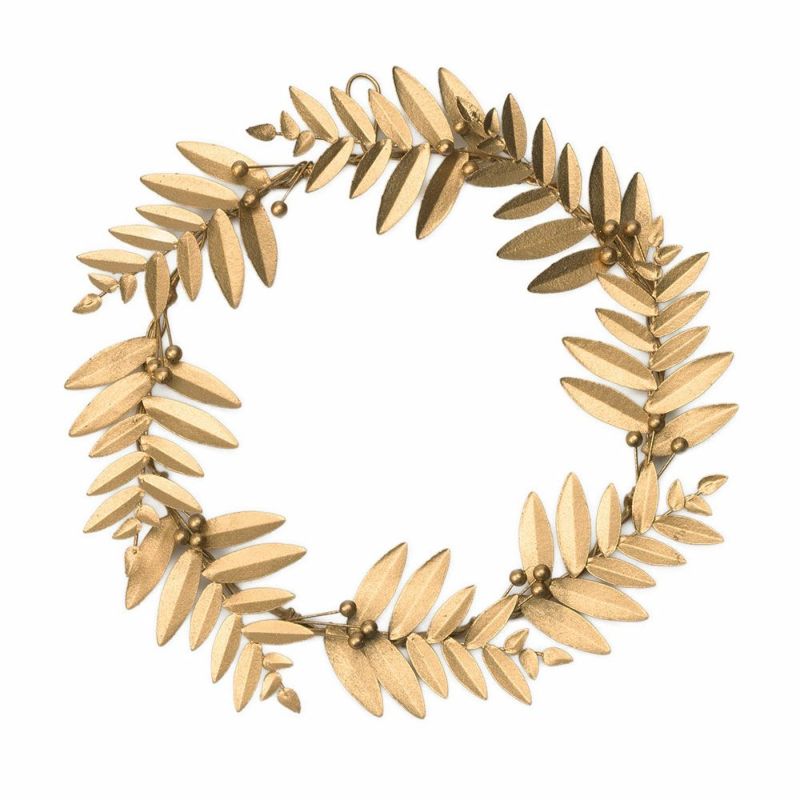 葉っぱのモチーフをいくつも重ねて作られた、ブリキ製のリース。