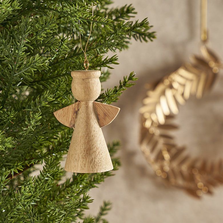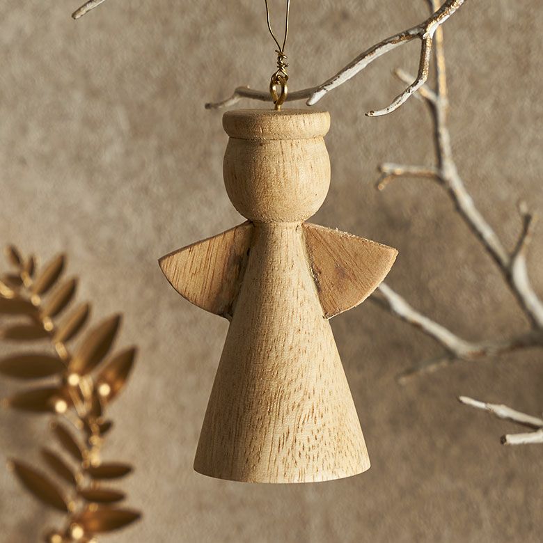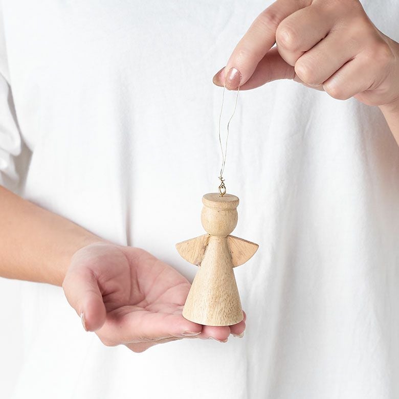 マンゴーウッドで作られた天使の無垢材オーナメント。