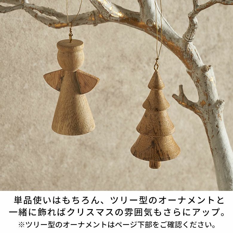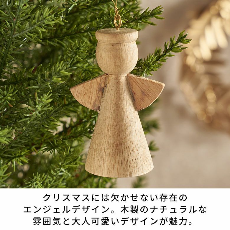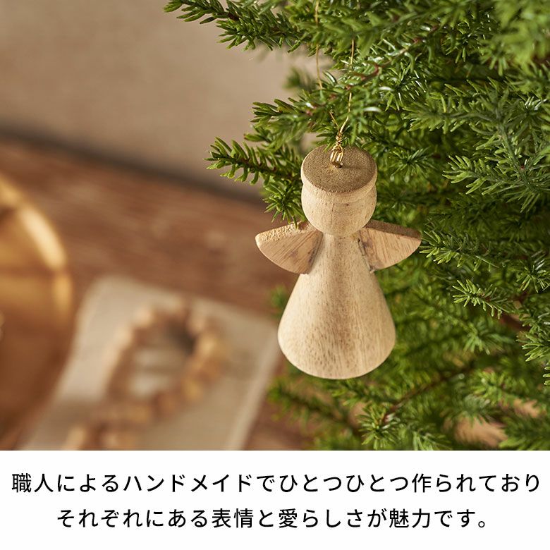 クリスマスには欠かせない存在のエンジェルデザイン。木製のナチュラルな雰囲気と大人可愛いデザインが魅力です。職人によるハンドメイドでひとつひとつ作られており、それぞれ異なる表情と愛らしさが魅力の天然木のオーナメント。