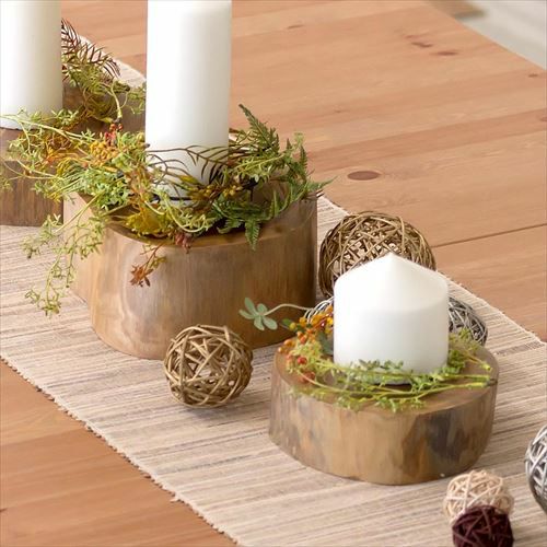 天然木そのままの、ぬくもり感じるチークウッドの飾り台。