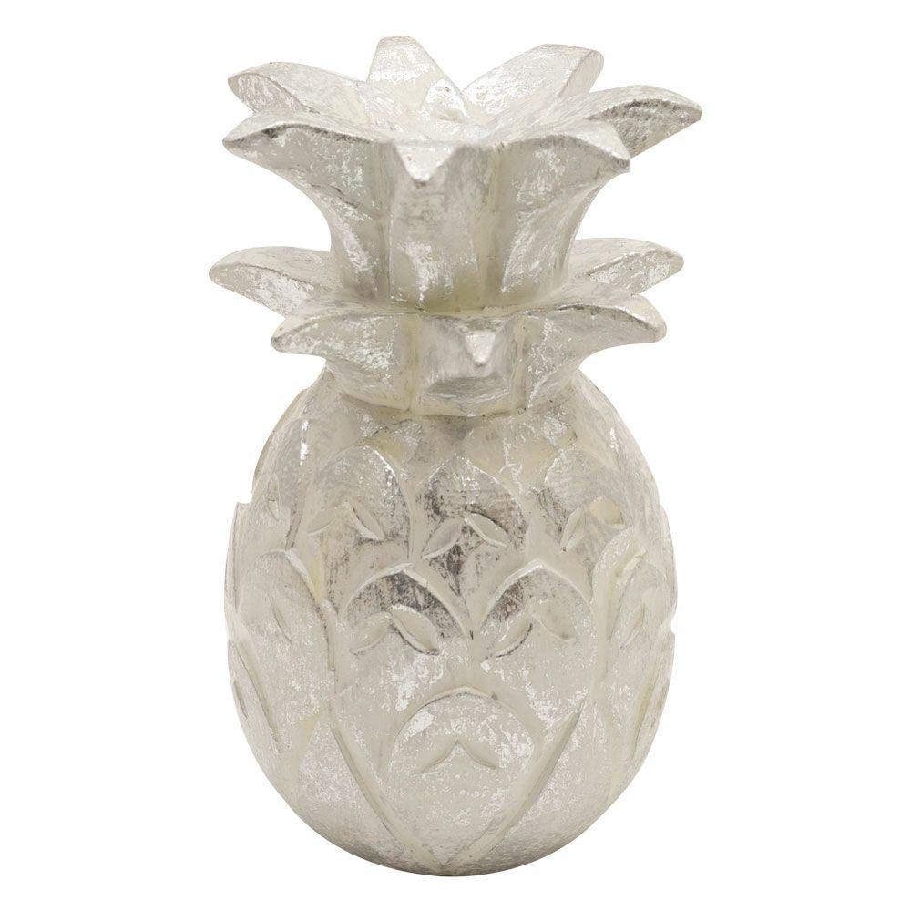 置き物 おしゃれ かわいい 卓上 飾り オブジェ ウッド 木製 木彫り 天然木 パイナップル パイン フルーツ 果物 シルバー 銀 ゴールド 金 W 11cm D 11cm H 16cm [13898]【 置物 インドネシア バリ ハロウィン クリスマス ディスプレイ オーナメント インテリア 店舗 リゾート 北欧 南国 アジアン雑貨 アジア 】