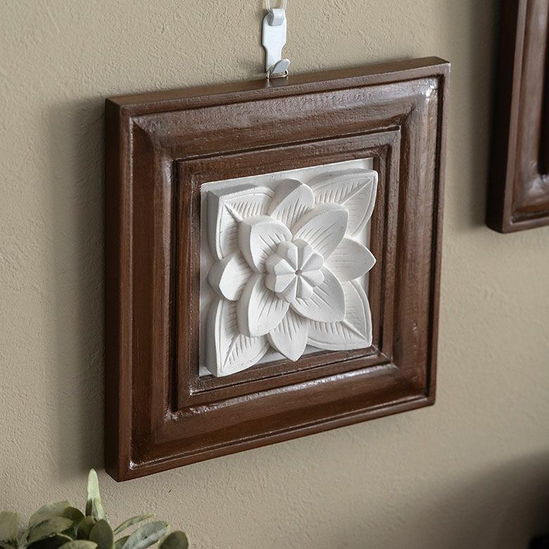 バリ島のリゾートホテルのインテリアのようにお部屋の壁を飾る立体的なアジアン彫刻。バリ島の人気アジアン雑貨 木製フレーム付きフラワーモチーフのストーンレリーフ 壁掛け アート おしゃれ かわいい アジアン雑貨 アジア雑貨 インテリア ウォールデコレーション オブジェ タイル 壁飾り 置物 花 ハワイアン雑貨 バリ雑貨 モダンアート モダン インテリアアート [11426]