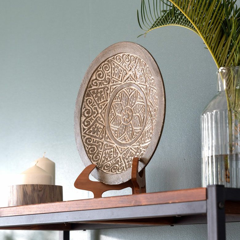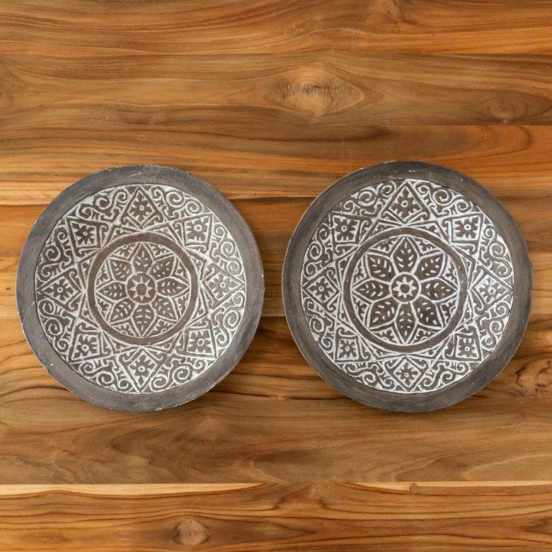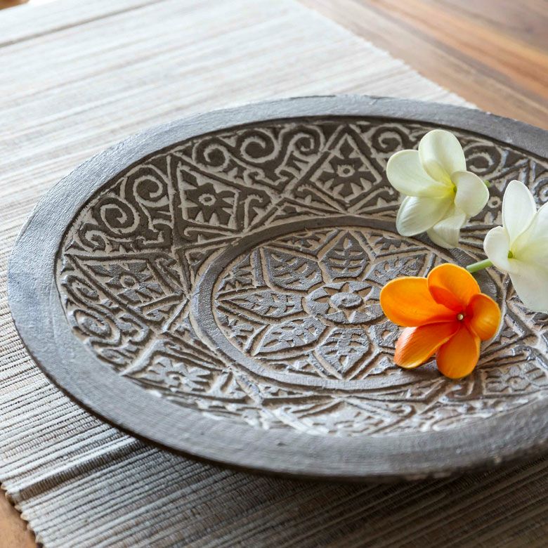 レリーフ BOHO エスニック アジアン 民族 トライバル アフリカン デコレーション トレイ トレー プレート 木製 ウッド スンバ W 29.5cm D 29.5cm H 5cm [13941]【 ハンドメイド オブジェ 木彫り 彫刻 カービング 置物 円形 ボヘミアン コースタル モダン おしゃれ アジアン雑貨 リゾート バリ島 】