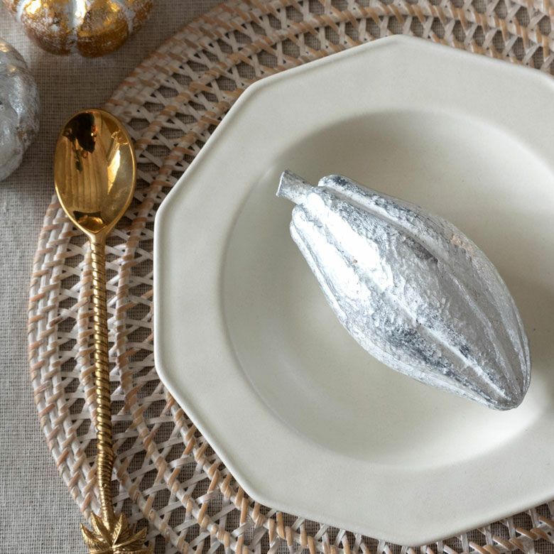 置き物 おしゃれ かわいい 卓上 飾り オブジェ ウッド 木製 木彫り 天然木 マンゴスチン フルーツ 果物 シルバー 銀 ゴールド 金 W 8cm D 8cm H 9cm [13900]【 置物 インドネシア バリ ハロウィン クリスマス ディスプレイ オーナメント インテリア 店舗 リゾート 北欧 南国 アジアン雑貨 アジア 】
