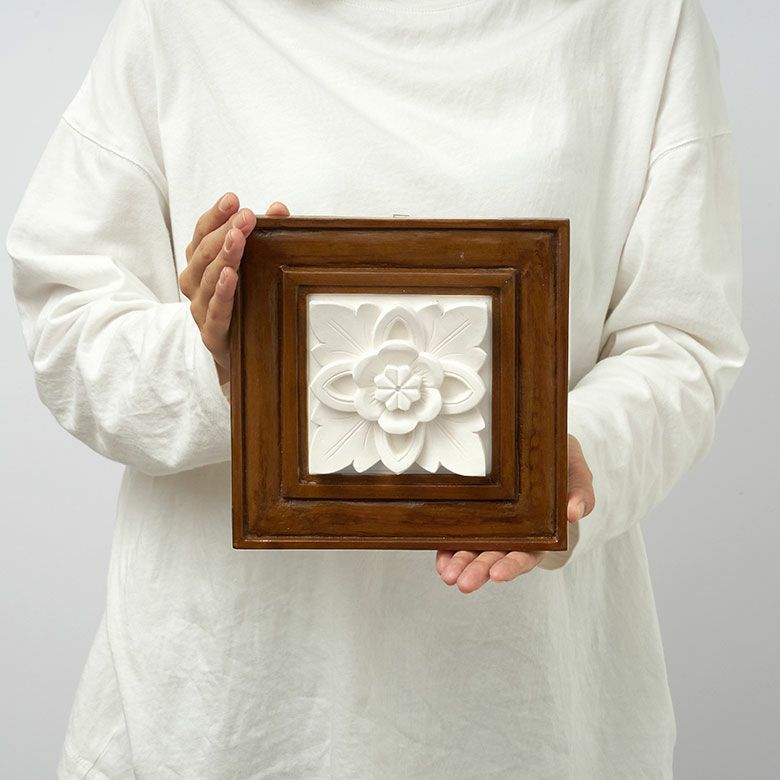 バリ島のリゾートホテルのインテリアのようにお部屋の壁を飾る立体的なアジアン彫刻。バリ島の人気アジアン雑貨 木製フレーム付きフラワーモチーフのストーンレリーフ 壁掛け アート おしゃれ かわいい アジアン雑貨 アジア雑貨 インテリア ウォールデコレーション オブジェ タイル 壁飾り 置物 花 ハワイアン雑貨 バリ雑貨 モダンアート モダン インテリアアート [11428]