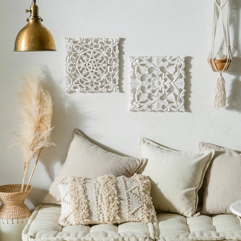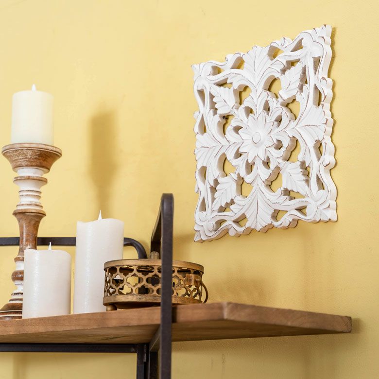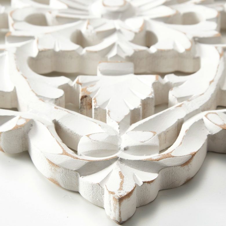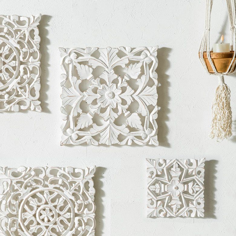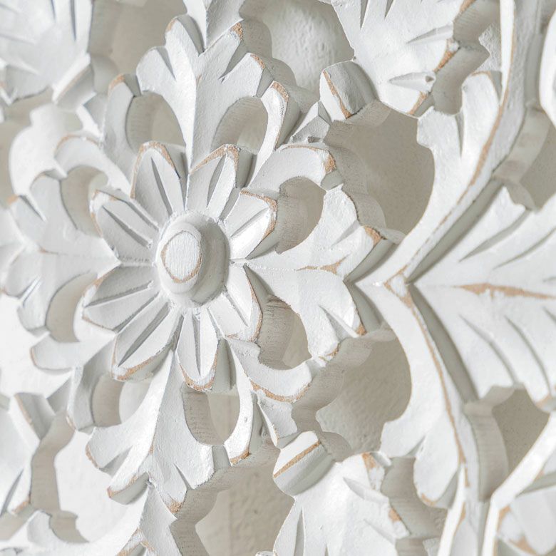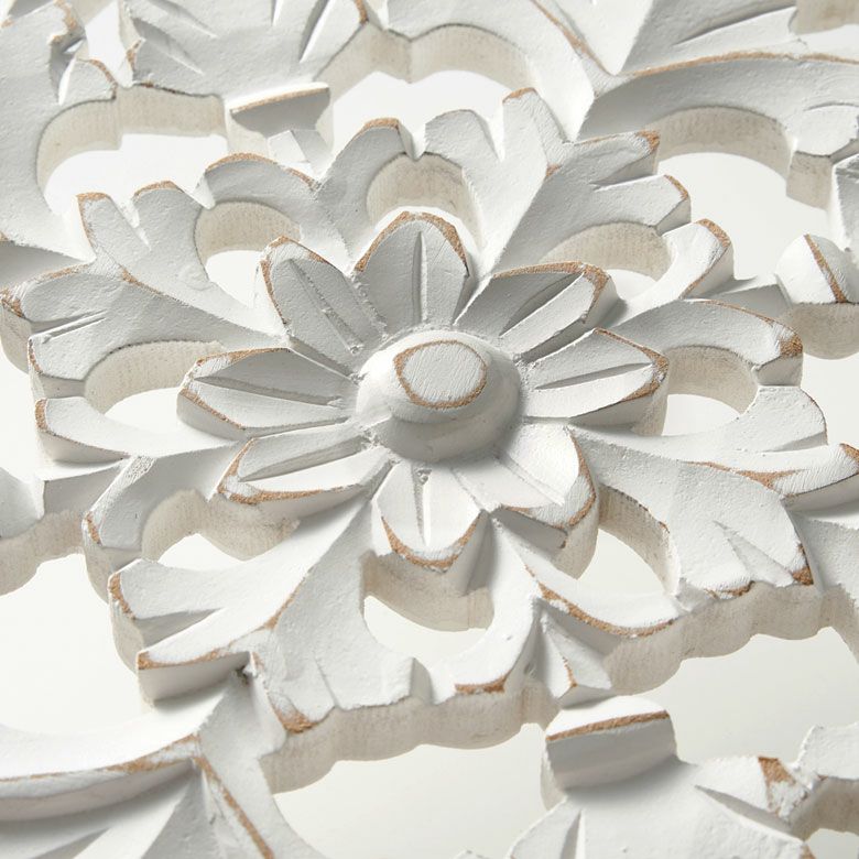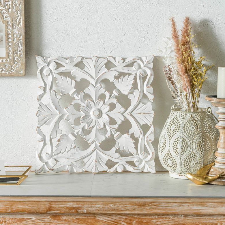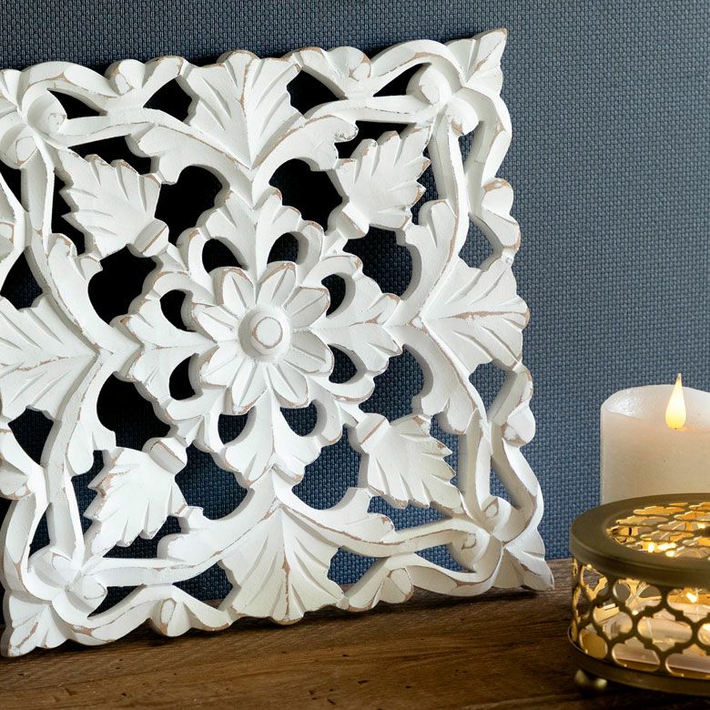 リゾート ホワイトインテリア パネル オブジェ 立て掛け 木彫り レリーフ 壁掛け アカンサス 白 ホワイト インド製 正方形 約 W 30 × D 30 × H 1.5 cm ウッドカービング アートパネル 木彫刻 壁飾り アジアンレリーフ ウォールデコレーション おしゃれ バリ島 バリ雑貨 北欧 アジアン 雑貨 アジアン雑貨 韓国インテリア [34557]