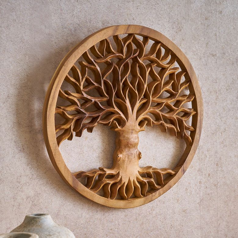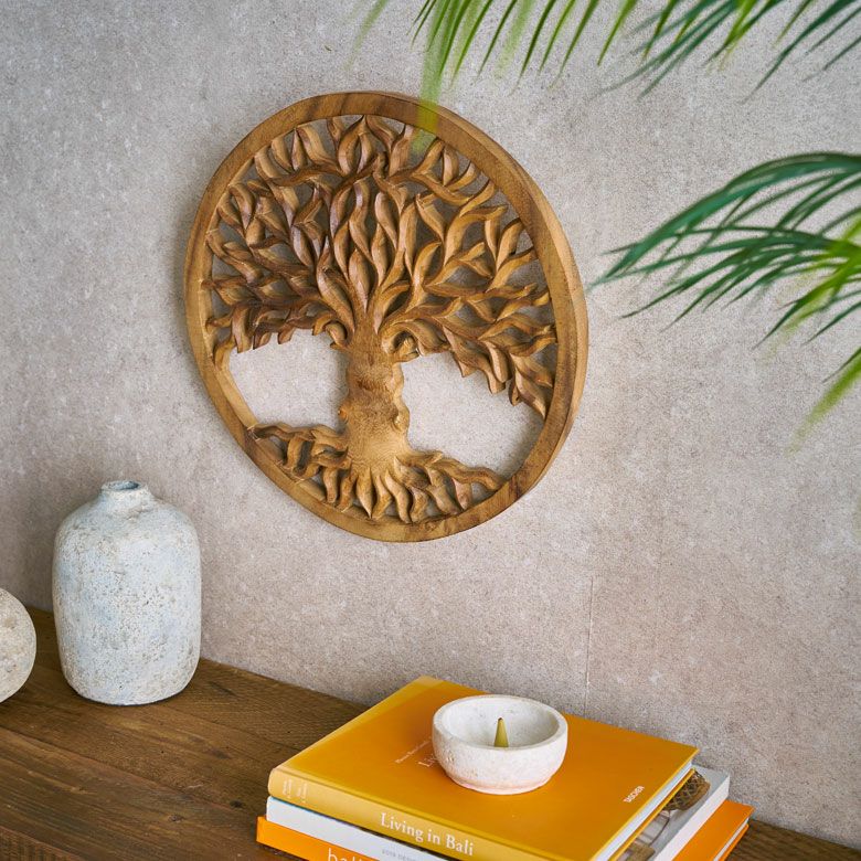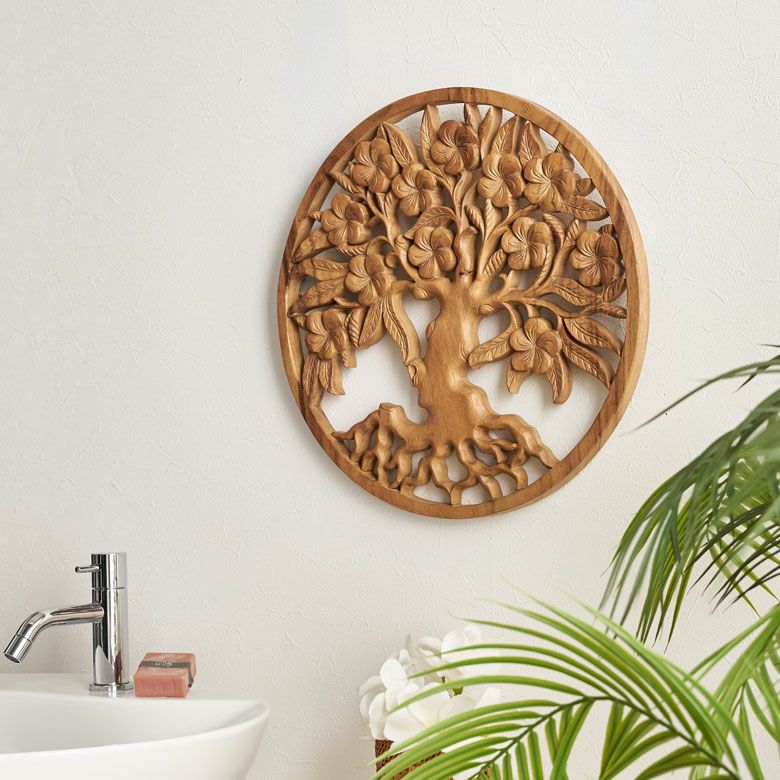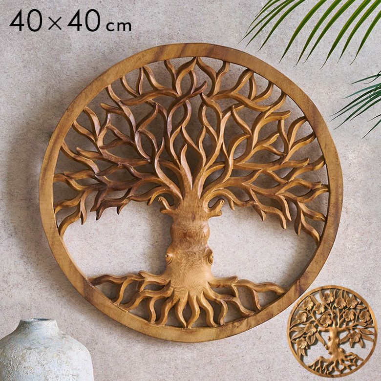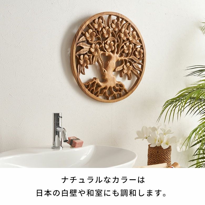 無垢の木材からノミ一本で彫り出された、オールハンドメイドのウッドレリーフ バリ島の職人がハンドメイドで彫った命の木のウッドレリーフ(14218 Tree of life)(14219 Tree of Jupun=プルメリアの木)(1421)