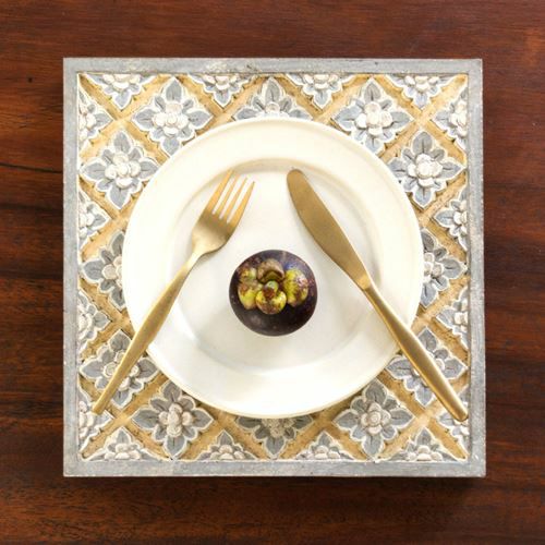 壁掛けオブジェ 壁掛けパネル 壁掛けアート アートパネル ウォールレリーフ 木彫り風 花モチーフ 背面フック付き 正方形 約30.5cm×30.5cm [13588] 【 ウォールデコレーション レリーフ 木彫り風 彫刻 インテリアアート おしゃれ アジアン雑貨 バリ雑貨 アジアンインテリア バリ島 南国リゾート ヴィラ ホテルライク 】