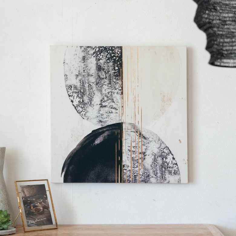 油絵 風 リビング 寝室 玄関 ホテル レストラン カフェ ギフト アートパネル BALANCE バランス キャンバス アート 幅50cm 高さ50cm 正方形 絵 抽象画 [67056]【 ウォールデコレーション 壁掛け イラスト 現代アート モノトーン モノクロ シック おしゃれ モダン 北欧 アジアン アジアン雑貨 バリ島 リゾート 】
