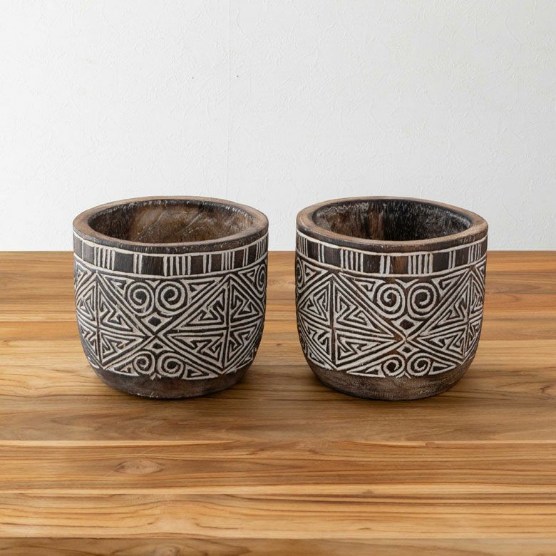 表面に施されたアジアンオーラ漂う彫刻は、インドネシア・スンバ島に伝わる伝統的な文様です。